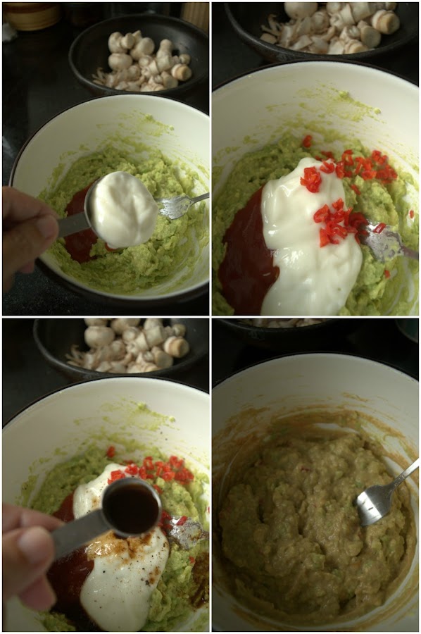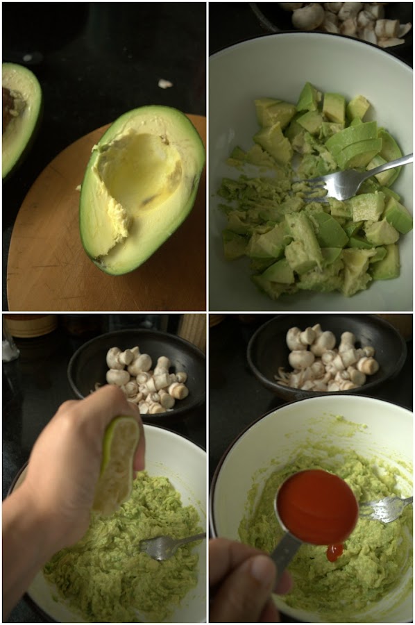 In a small bowl, mash avocado with a fork. Dont make it puree completely.
