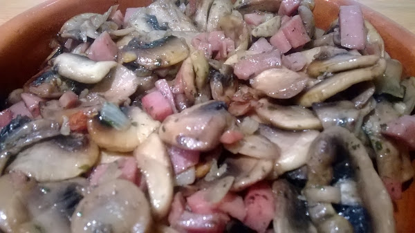 pavos. Estaremos haciéndolos durante 10 o 15 minutos y echaremos un poco de perejil, Veréis que los champiñones se empiezan a poner de color gris. Cuando tengáis echo los champiñones os aconsejo que pongáis un huevo a la plancha encima que seguro que os gustara.