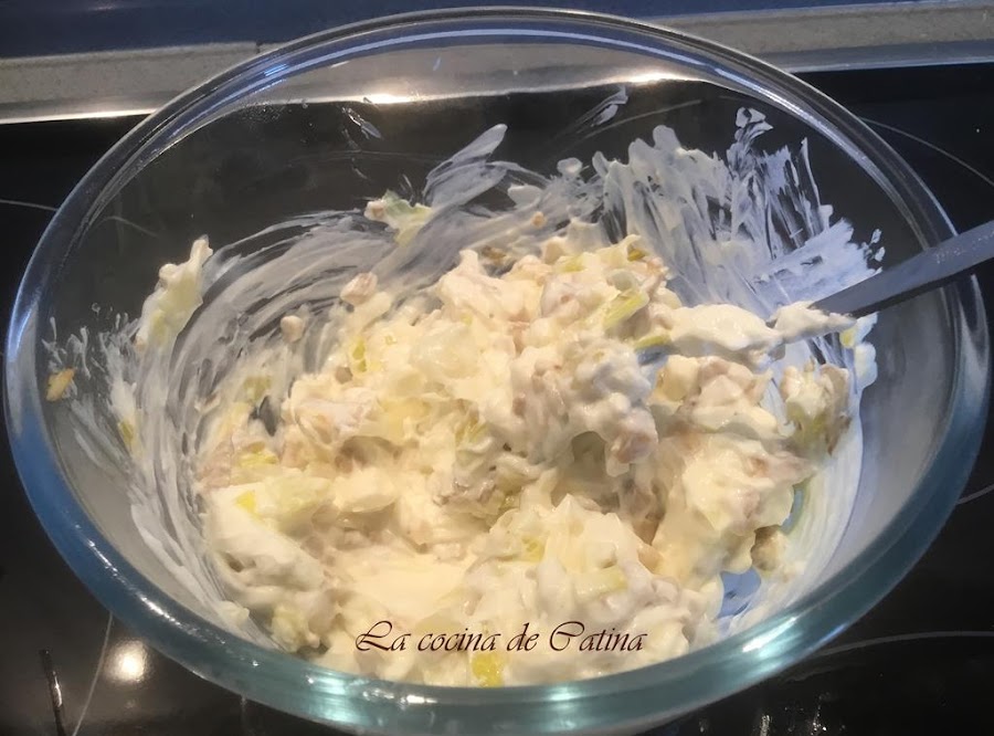 A continuación mezclamos con el queso filadelfia y el perejil picado.