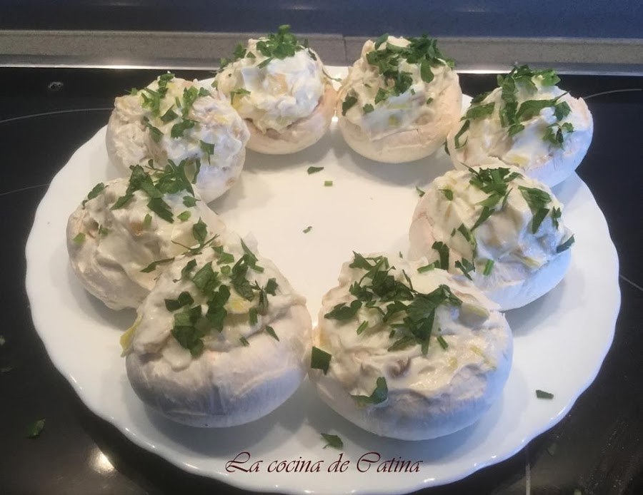 Rellenamos los champiñones con esta mezcla y horneamos durante 20 minutos.