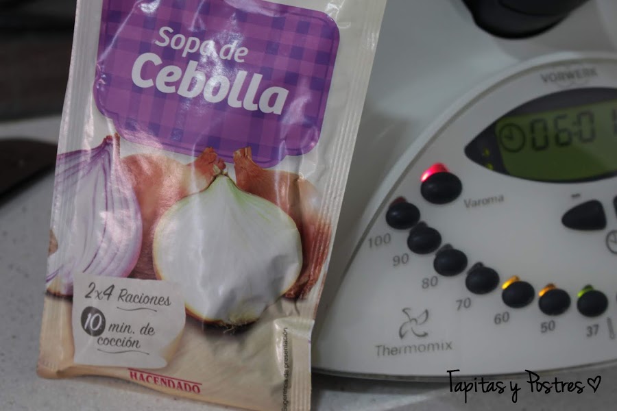 Olvidaba enseñaros la sopa de cebolla que he usado, es de Mercadona, pero la podemos encontrar en otros establecimientos.