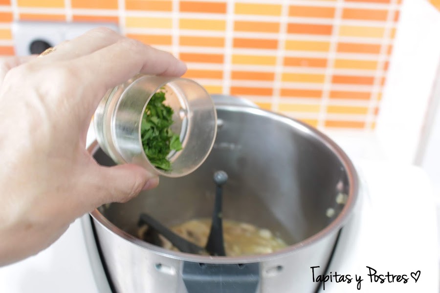 Pero a los tres minutos, paramos, vemos que todo esta integrado y añadimos el perejil picado. dejamos que acabe la cocción.