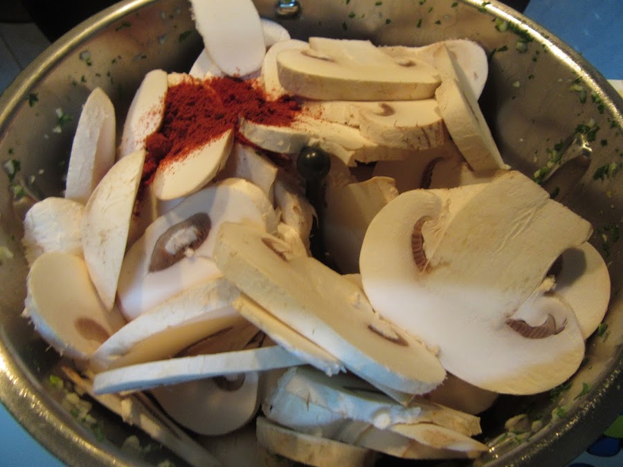 3- Colocar la mariposa, agregar los champiñones laminados y el pimentón, 5 min. Varoma, vel, cuchara.