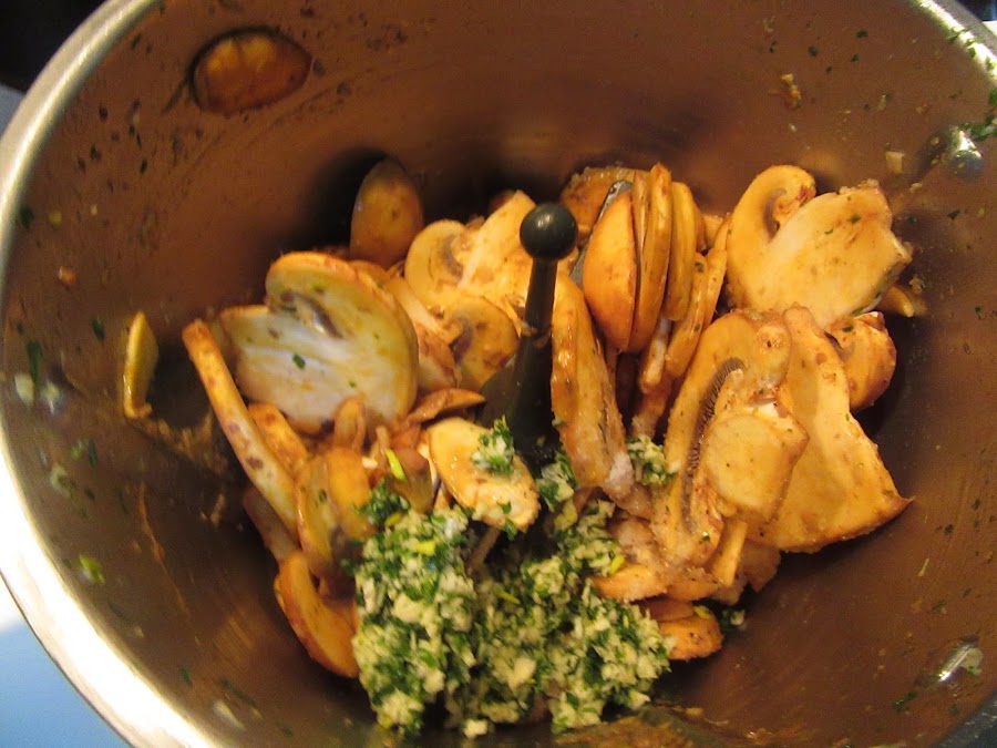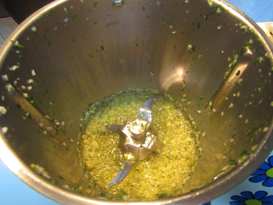 1- Picar dos dientes de ajo y perejil, 4 seg. vel.5. Reservar.