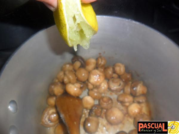 Cuando estén doraditos, agregue el limón y el ajo, sal y pimienta.