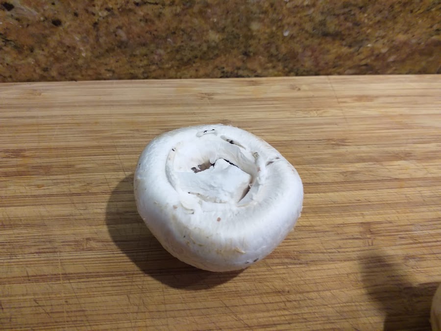 Empezamos quitando el pie a lo champiñones y colocando en su lugar un trocito de queso de cabra.
