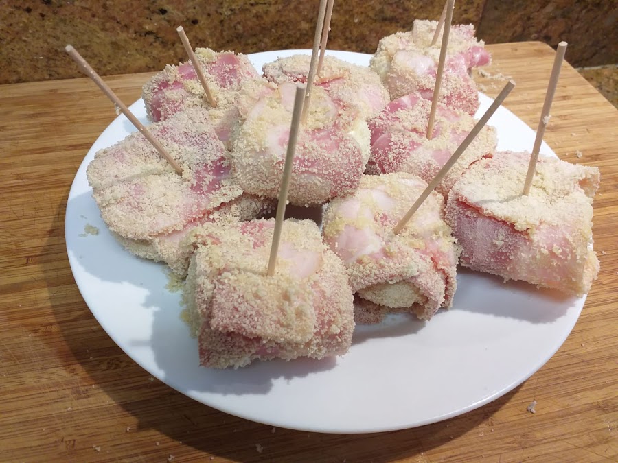 Y los pinchamos con un palillo largo para que no se nos abra el bacon
