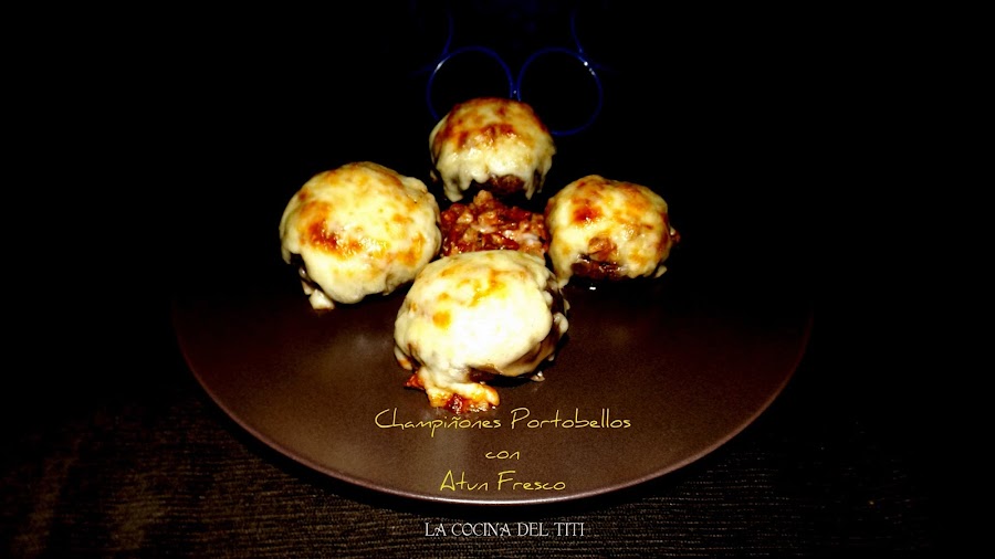Hola a todos hoy nos vamos con unos champiñones portobellos y lo vamos a rellenar con un atun fresco cortado a dados pequeños, en el que le vamos hacer un tomate natural y cubrimos con bechamel, queso y gratinamos.