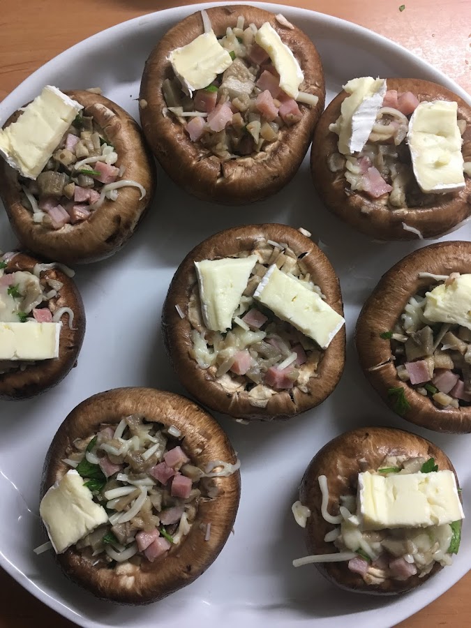 Se disponen en una fuente para horno y se coronan con un trocito de queso Brie.