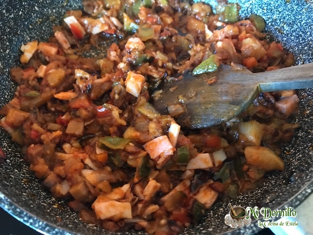 3 o 4 cucharadas de pisto. ( O tomate frito)