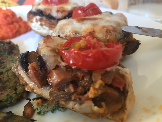 Rellenamos los champiñones con esta mezcla.