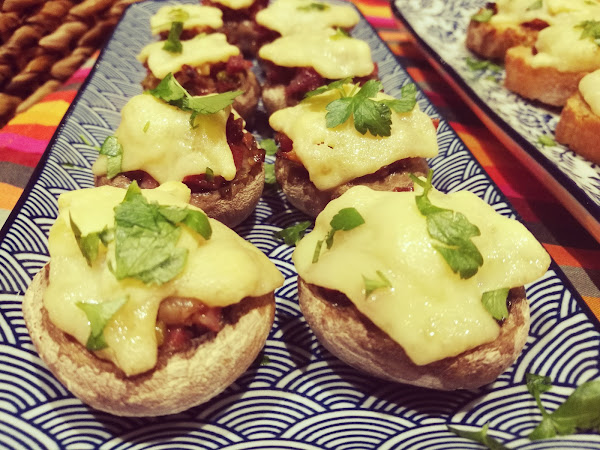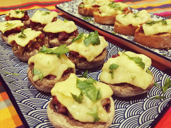 Yo me tiré de cabeza a por una que no tenía todavía en ninguna versión, los champiñones rellenos, y la verdad es que es un picoteo de categoría. Come me sobró relleno lo puse sobre unas rebanaditas de pan y también está divino. Es facilísimo de preparar y está ummmmm...delicioso!