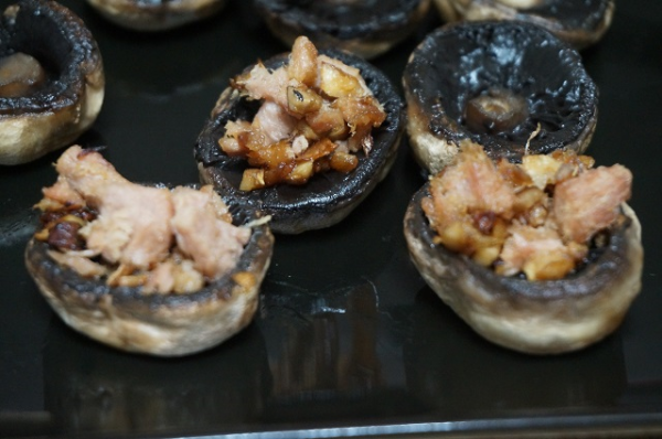 Champiñones rellenos de atún y queso
