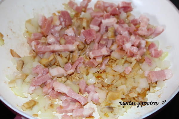 Picamos el bacon y lo añadimos al sofrito.