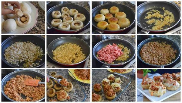 Con mucho cuidado vamos rellenando los champiñones, haciendo un poco de presión y con algo de altura.