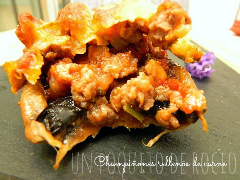 No es la primera receta que publico de champiñones rellenos, aquí los tenéis con salmón, o con sólo tres ingredientes también deliciosos. Así que ahora, porqué no, decidí probarlos rellenos de carne, como las berenjenas por ejemplo, pero con un poquito más de paciencia para rellenar, [cuestión de tamaño], pero si lo hacemos con una cucharilla pequeña, es un bocado que merece mucho la pena.