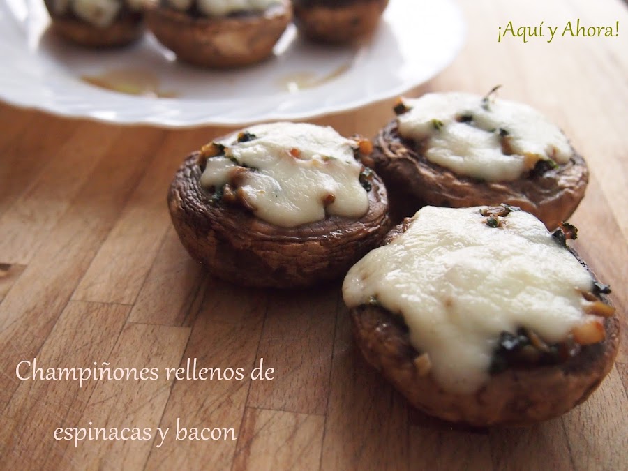 Estos champiñones rellenos de espinacas y bacon, os puedo decir que no son nada complicados de hacer y son perfectos para una maravillosa guarnición o solamente como plato principal. Es un relleno con ingredientes sencillos y con un sabor delicioso y bastante rico, todo hay que decirlo, la gracia que le da el bacon lo hace como uno de mis platos preferidos!!