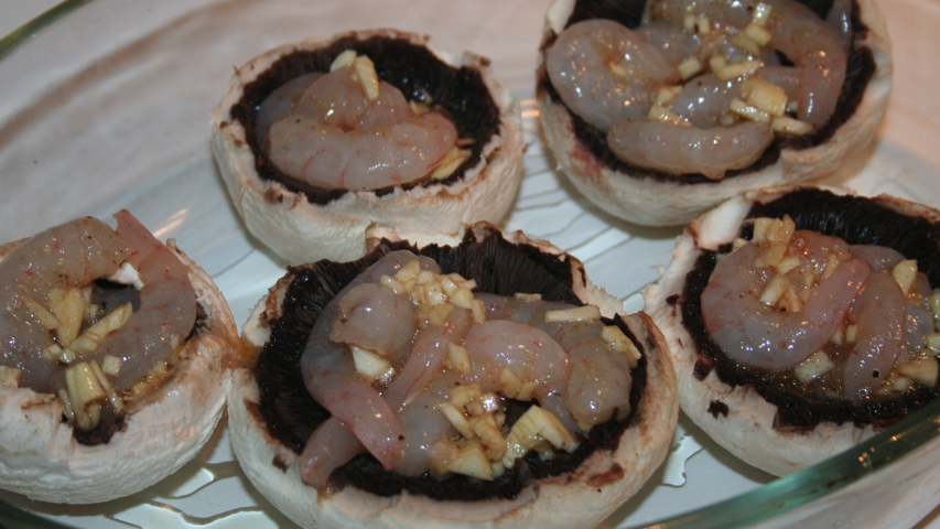 Relleno los champiñones con el contenido del bol repartiendo proporcionalmente.