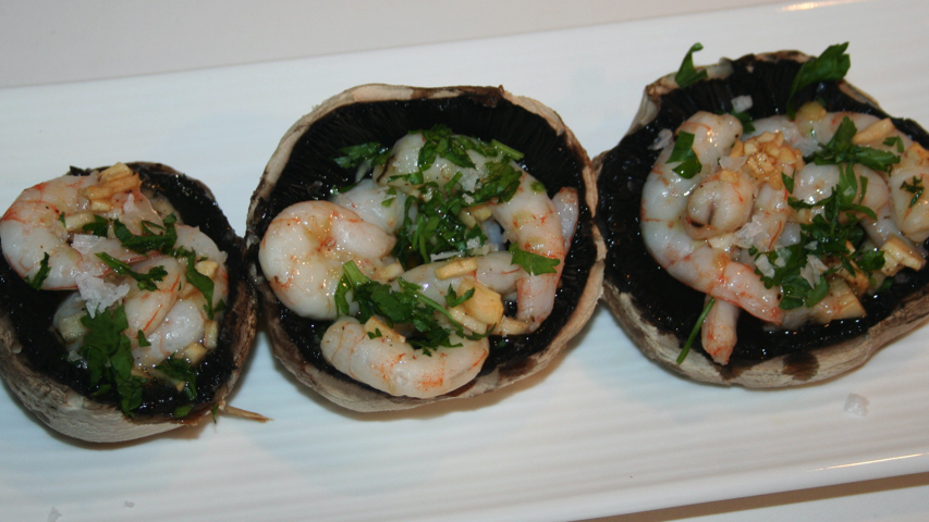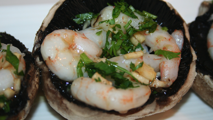 Pica un poco de perejil fresco sobre los champiñones rellenos.