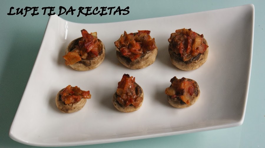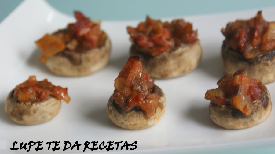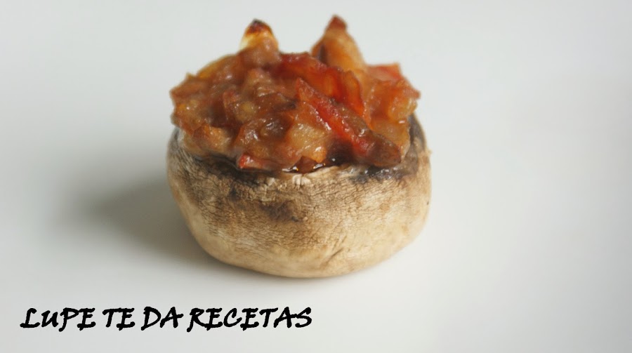 Picar el jamón, mezclar con los ingredientes del sofrito e ir añadiendo la bechamel hasta tener la consistencia deseada. Rellenar los champiñones con la mezcla y meter al horno a 175º durante unos 30 minutos.