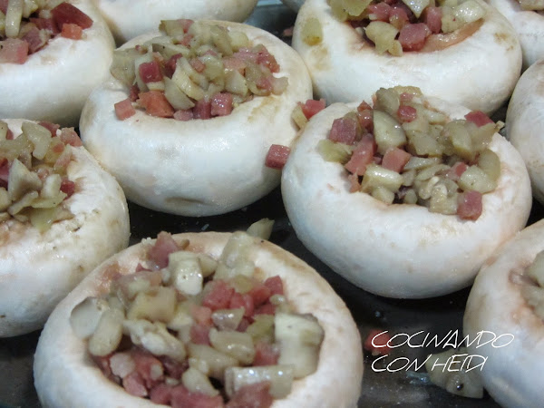 Estos champiñones rellenos, nos salvan una cenita, o nos sirve de acompañamiento para una comida principal.