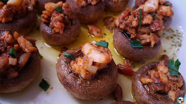 Toma como ejemplo algunas recetas que he cocinado durante este tiempo; champiñones rellenos de chorizo vegetal, rellenos de huevo, rellenos en tortilla, con ternera, con judías verdes, con langostinos, con pechugas de pollo o con ensalada entre tantas otras formas de cocinarlos.
