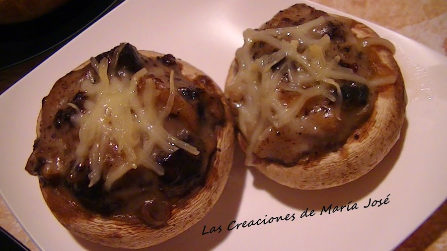 Lo primero se limpian los champiñones, se vacían y se ponen en una bandeja apta para el horno. Con lo que nos ha sobrado de los champiñones lo picamos y lo echamos en una sartén con una cucharada de aceite de oliva. Pelamos la morcilla y desmigamos, la mezclamos con el picado de champiñones. Rehogamos todo. Cuando veamos que esta hecho echamos 1 cucharada de harina, mezclamos y echamos el vaso de leche, mezclamos echamos una pizca de pimienta blanco. Mezclamos todo, vamos removiendo hasta que espese (como una bechamel mas o menos). Dejamos templar y rellenamos los champiñones, espolvoreamos queso rallado por encima y lo metemos al horno 10 minutos a 180º y listos para comer.