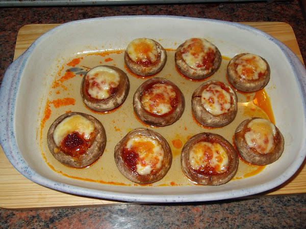 Precalentamos el horno a 200º y metemos durante 20 minutos o hasta que veamos que se haya cocinado el champiñón, ya que esto dependerá mucho del tamaño que tenga. Los sacamos y ya están listos para comer.