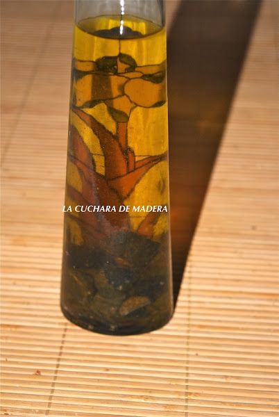 A los champiñones rellenos de verdura y a los de pollo, pondremos un hilo de aceite de trufa. El aceite de trufa esta hecho con aceite de oliva extra virgen y unas trufas troceadas que se deja unos meses para que el aceite coja el aroma de trufa, pero como dije antes es opcional.Anímate a prepararla y tenerla en la cocina para diferentes recetas.
