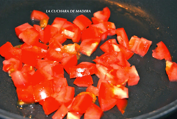 Empezamos el relleno de los de atún lavando y troceando el tomate,lo ponemos en una sartén a fuego medio con un hilo de aceite de oliva extra virgen , sal y los dejamos unos minutos