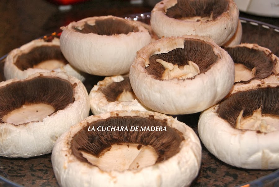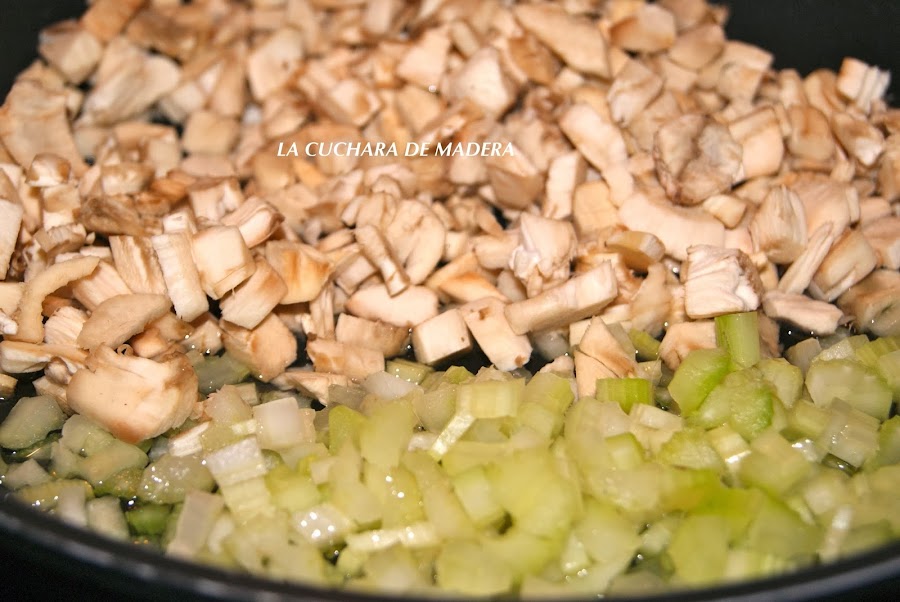 Champiñones rellenos de apio,cebolla,troncos de champiñones y pechuga de pavo: