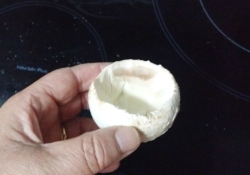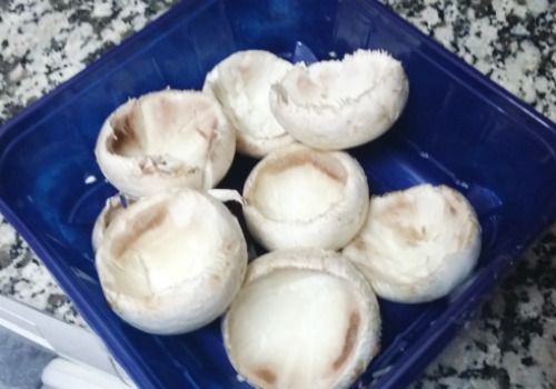 2- Quitamos el tallo de los champiñones y los vaciamos.