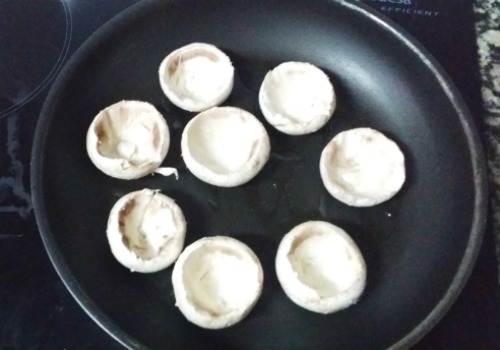 5- En una sartén ponemos unas gotas de aceite y ponemos los champiñones.