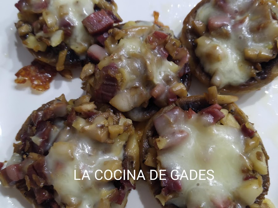 Rellenamos los champiñones y cubrimos con el queso mozzarella, metemos en el sartén y cubrimos con la tapadera a fuego lento hasta que se funda el queso y listo para comer.