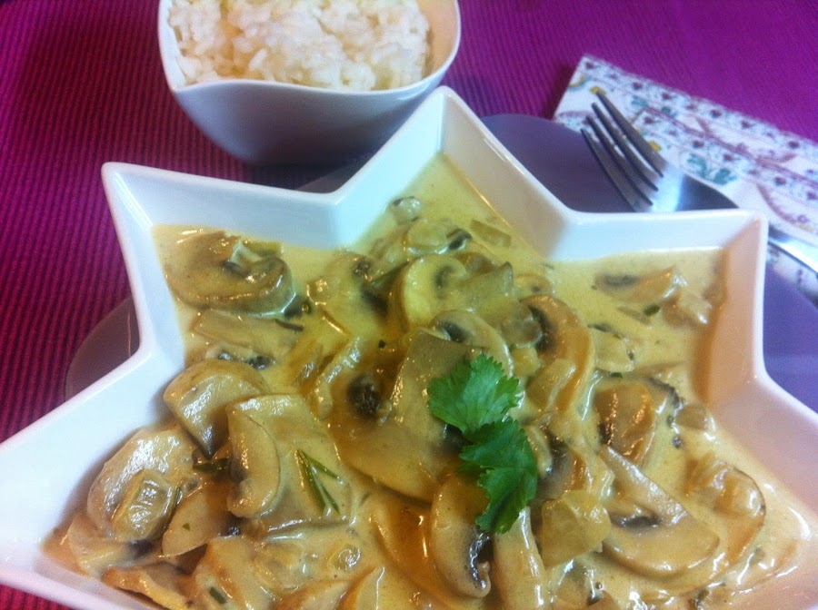 arroz blanco cocido para acompañarSe lavan ligeramente los champiñones, se secan y se cortan por la mitad, luego en cuartos y cada cuarto en dos o tres trozos (yo utilicé champiñones hermosotes).