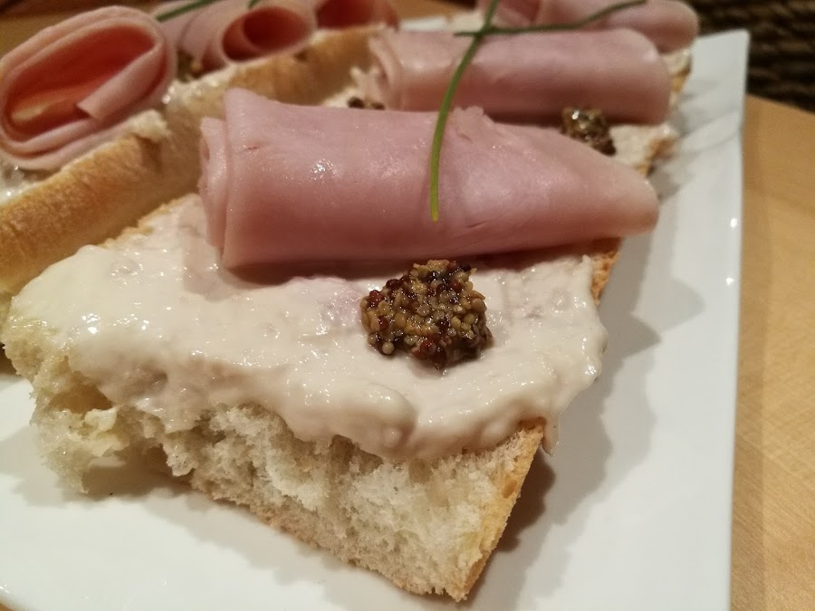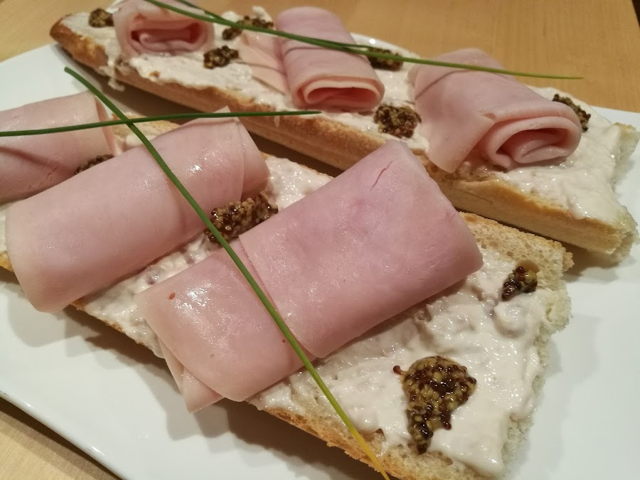 - Enrollar el jamón dulce y repartirlo sobre el pan