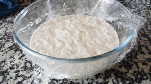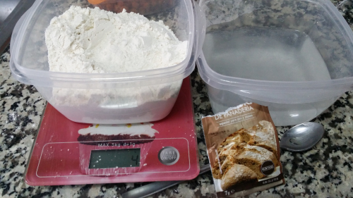 Yo he adaptado también su receta a lo que os comento a continuación basándome en dos cuestiones: Cesar dice que su cocina en invierno es tan fría como el Polo, yo he hecho el pan en mi cocina de Valencia en pleno verano. Nada que ver ¿Verdad? Y la segunda cuestión es que he adaptado los tiempos a mis tiempos: trabajando por la mañana no puedo dejar los tiempos de levado tan frecuentes y tan largos, sino que he hecho una preparación “agilizada”.