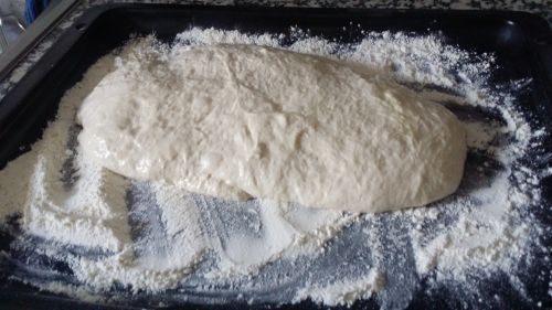 6.- Espolvoreamos con harina y dejamos reposar una hora.