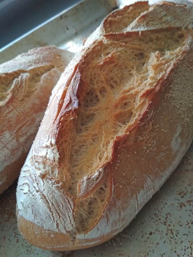 Deslizamos el pan sobre la bandeja y vaporizamos agua (si no tienes horno con vapor).
