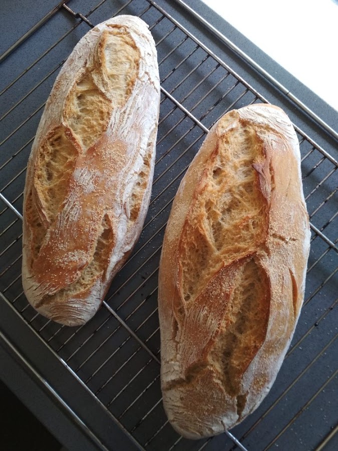 Mezclamos los ingredientes de la Biga, hasta que estén bien integrados. Hacemos una bola y metemos en un recipiente engrasado con aceite, tapar y dejar fermentar durante 18-20 horas.
