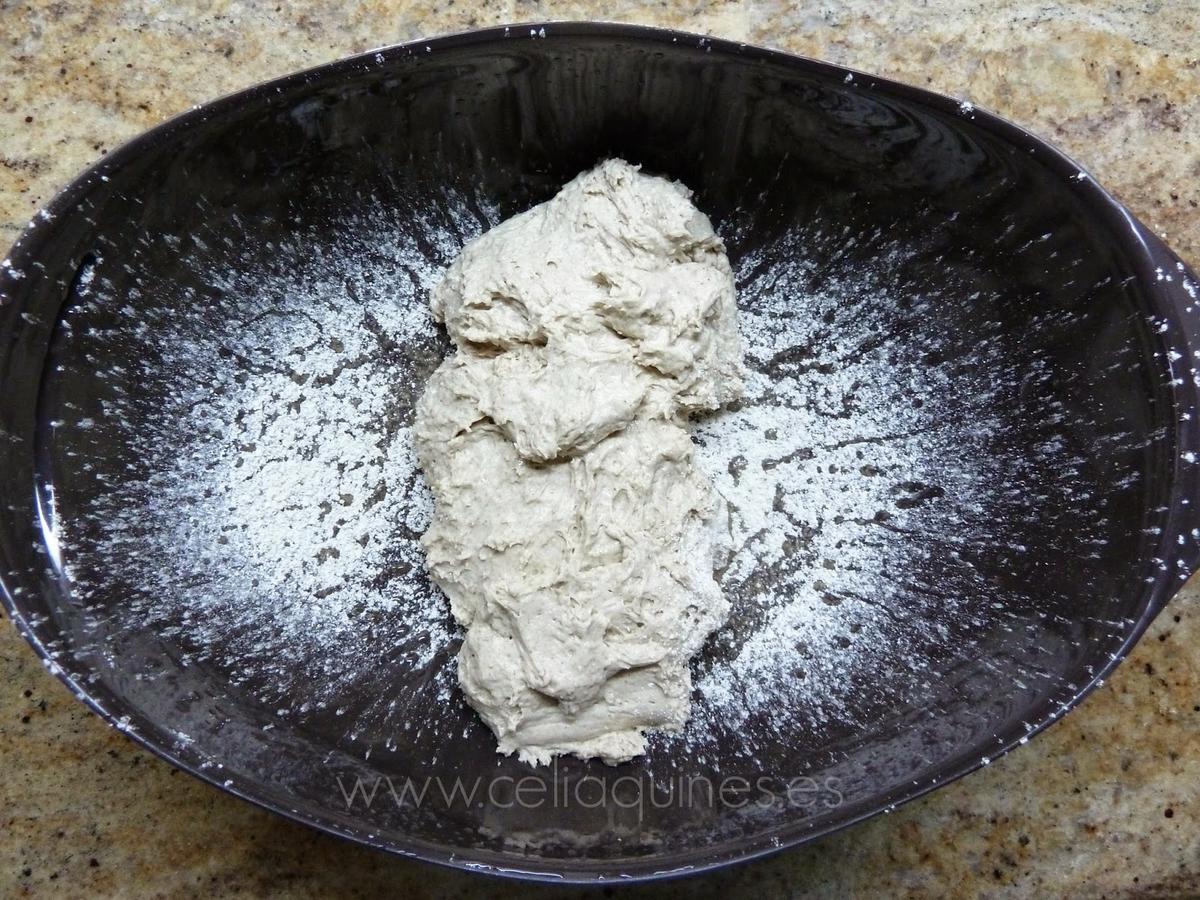 2) Añadir a lo anterior: harinas + psyllium + goma xantana.3) Amasar un par de minutos, dejar reposar otros dos y añadir la sal. Seguir amasando durante unos 8 minutos.