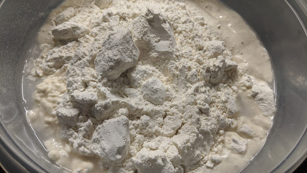 Volver a casa y bajan las temperaturas... corriendo a activar mi masa madre para preparar unas chapatas. Lo primero que hago siempre es sentarme y calcular la fórmula en función de las necesidades de tiempo, del fermento que tenga activo o del resultado que espero conseguir. Así que, como mi masa madre no estaba en el pico de actividad (aún estaba subiendo), preparé una fórmula con bastante porcentaje de masa madre a sabiendas de que iba a subir lentamente a temperatura ambiente (las horas aportan sabor a la masa)