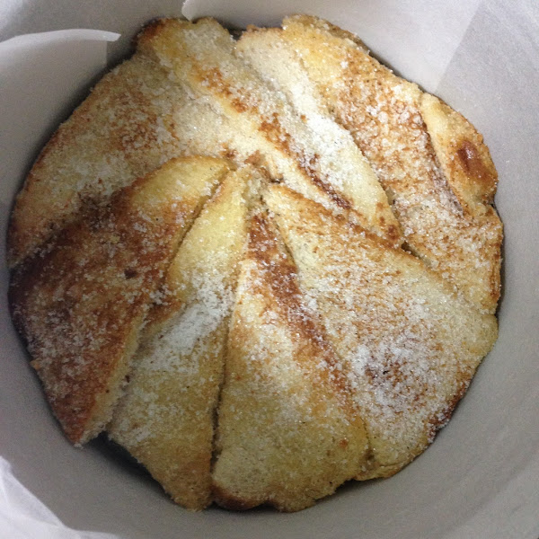 Cortamos en dados la mantequilla restante (150g). Fundimos unos 4-5 dados en una sartén amplia y doramos en ella las rebanadas de pan que nos quepan. Les damos la vuelta y las doramos por el otro lado. Nada más sacarlas del fuego, las rebozamos con una generosa cantidad de azúcar blanquilla. Reservamos en una fuente, mientras repetimos la operación hasta acabar con todo el pan.