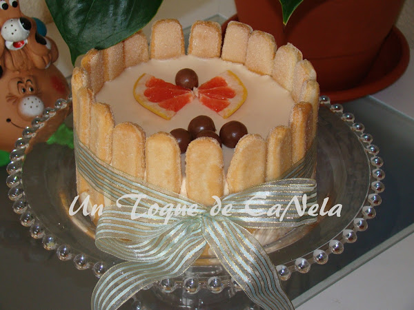 Llevar al frigo y cuando esté medio cuajada, poner la naranja, remover y verter en el molde con los bizcochos. De nuevo al frigo al menos 4 horas antes de consumir.