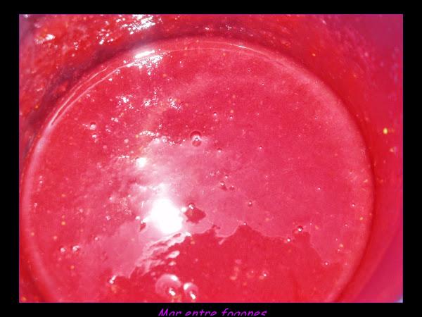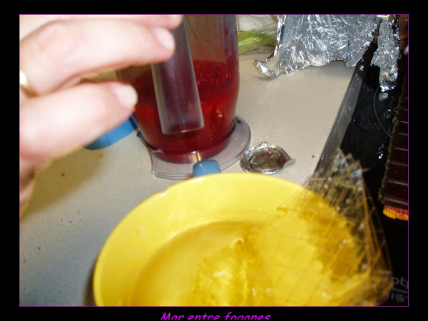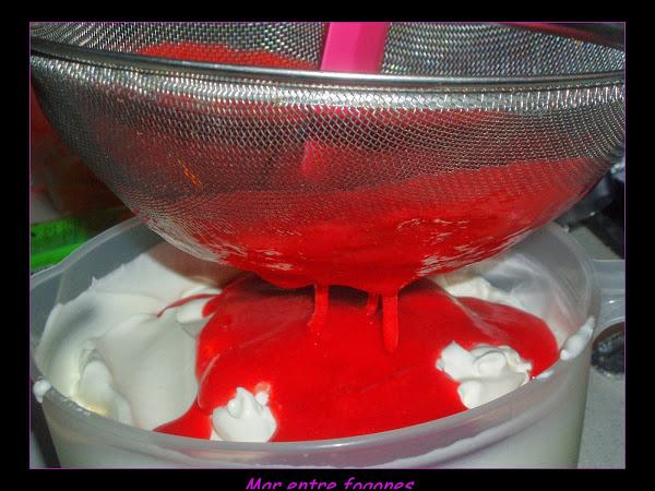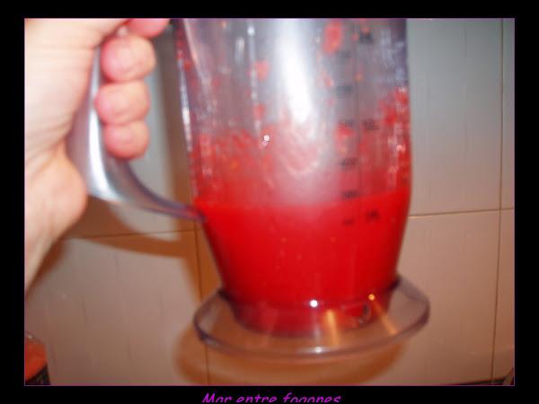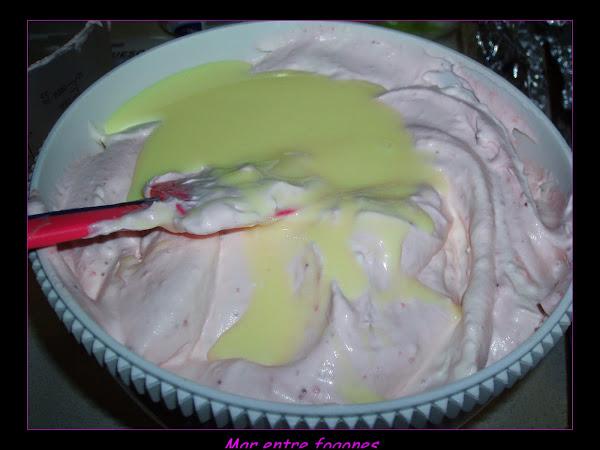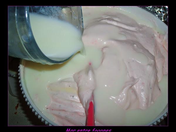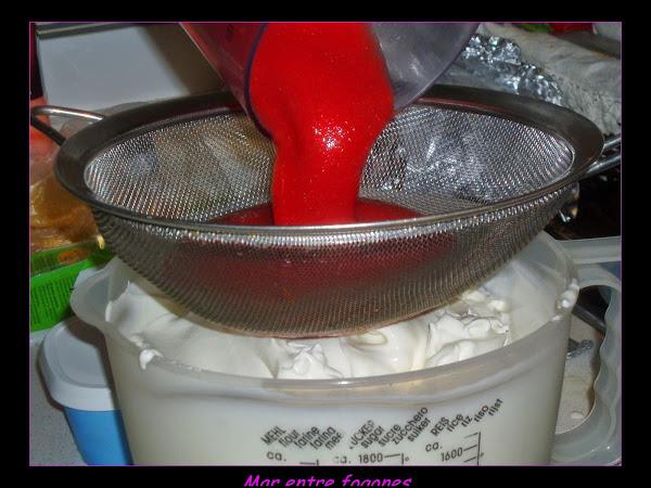 Mezclamos el puré de fresas con la nata (crema de leche).