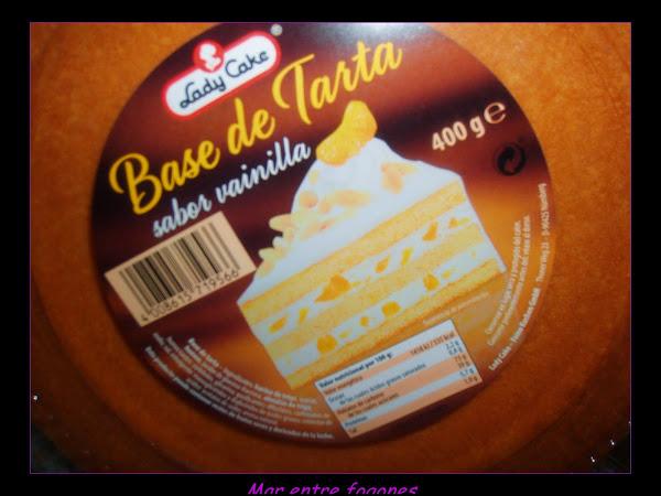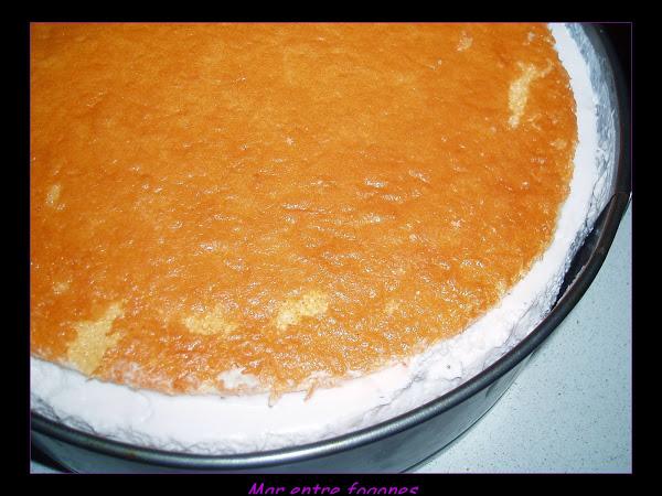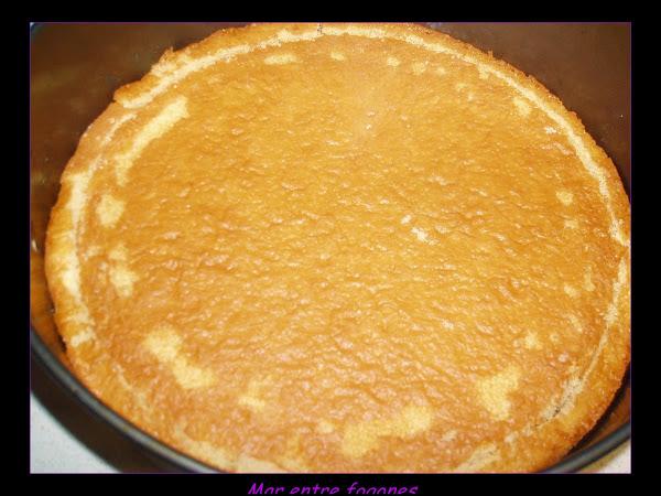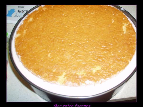 Ponemos en un molde desmontable una plancha de bizcocho que tenemos comprada.