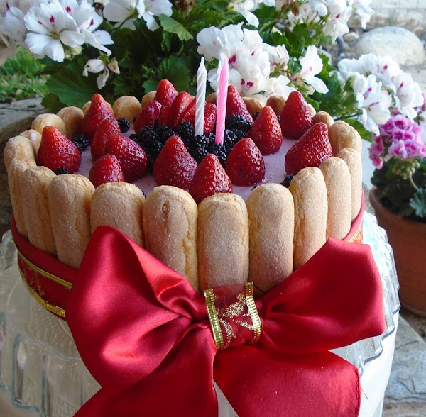 Hoy celebramos el 3º cumpleaños del Desafío en La Cocina, para mi es el primer año que he pasado con este maravilloso grupo, ¡¡ gracias a las adorables boss!!, que muchas veces nos lo han puesto muy difícil, quiero agradecer las antes de nada, todo lo que he aprendido con los desafíos que nos han propuesto durante estos meses, lo bien que me lo he pasado con sus misteriosas pistas o en esta última con las votaciones que hicimos en el grupo para elegir la tarta que representaría este 3º cumpleaños una pasada. Muchas veces no se ponen de acuerdo y delegan en el grupo que mediante votación sin saber cual iba a ser la "Tarta "votamos y por un punto de diferencia gano esta deliciosa Tarta Charlotte Cake.