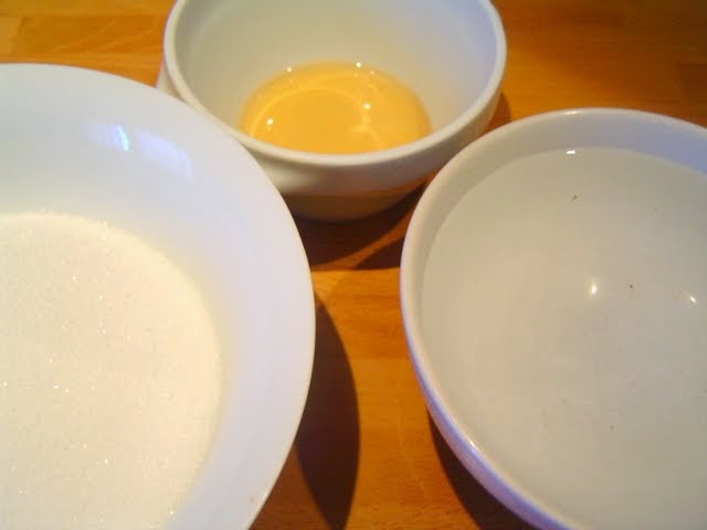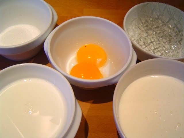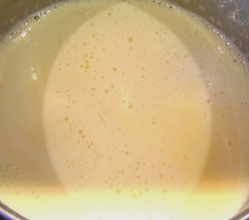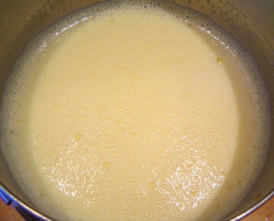 En un bol mezclamos las yemas con el azúcar y vamos echando la leche caliente,