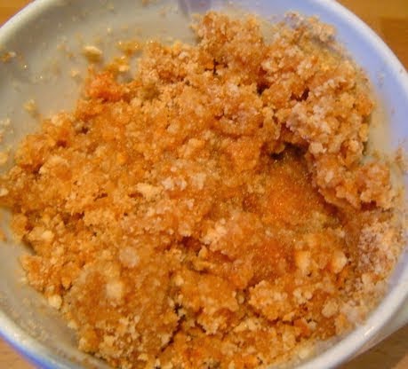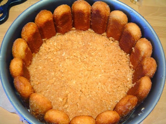 Con este bizcocho triturado, forramos lo fondo del molde.
