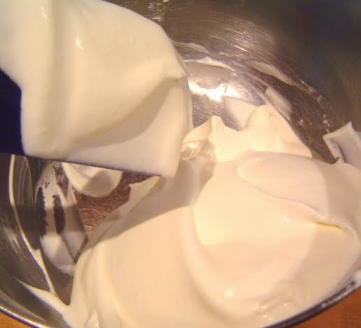Cuando esté a temperatura ambiente, montamos la nata (crema de leche) y añadimos